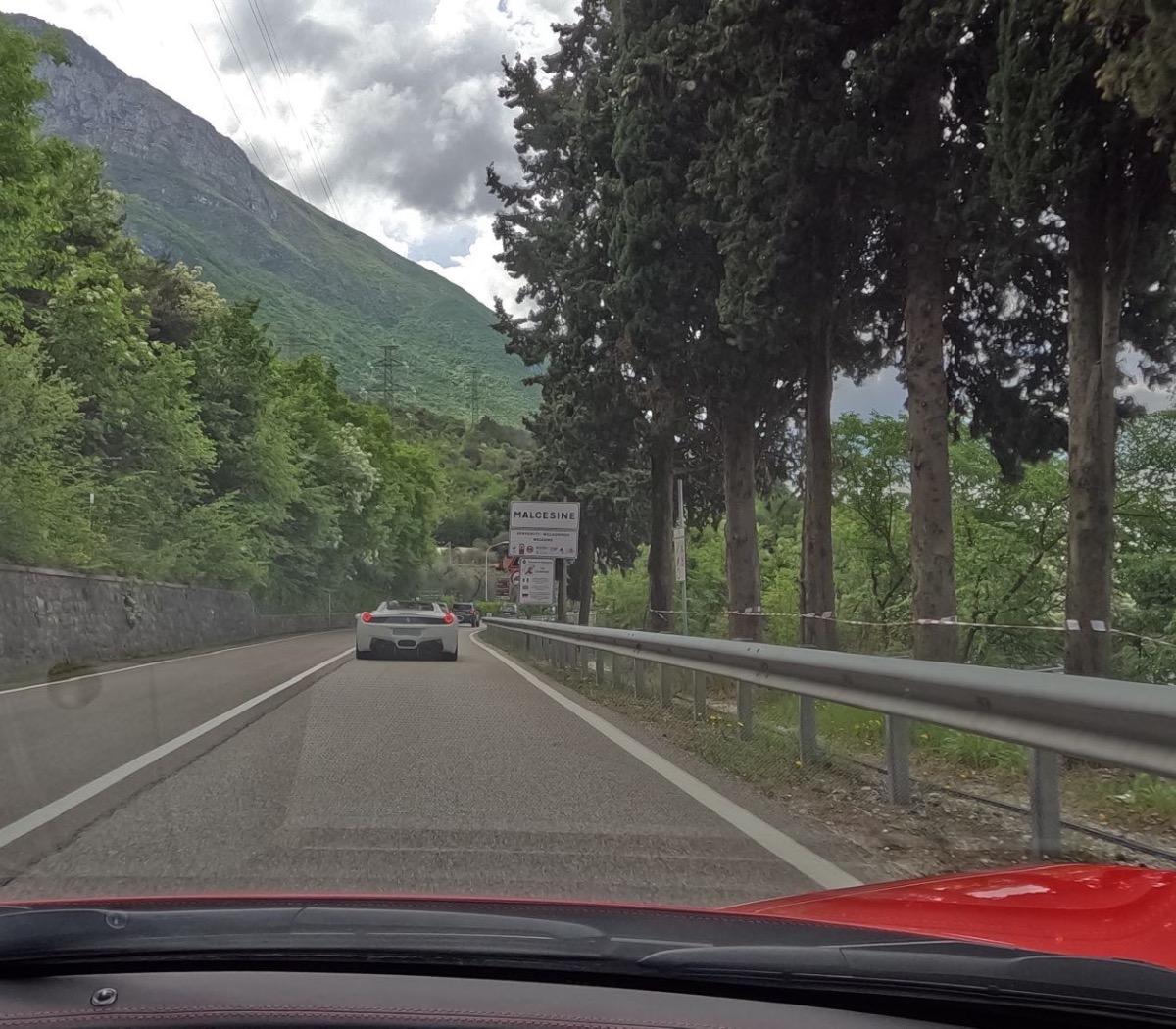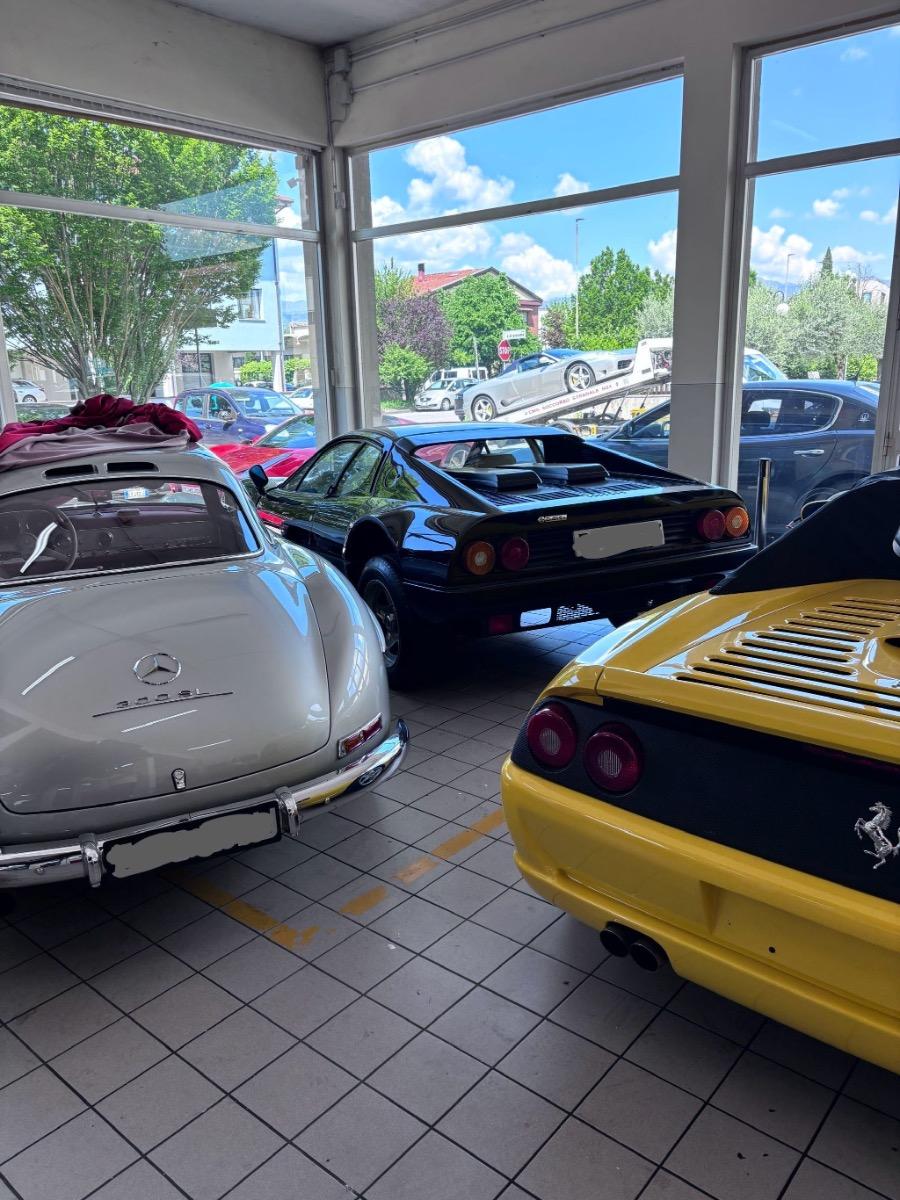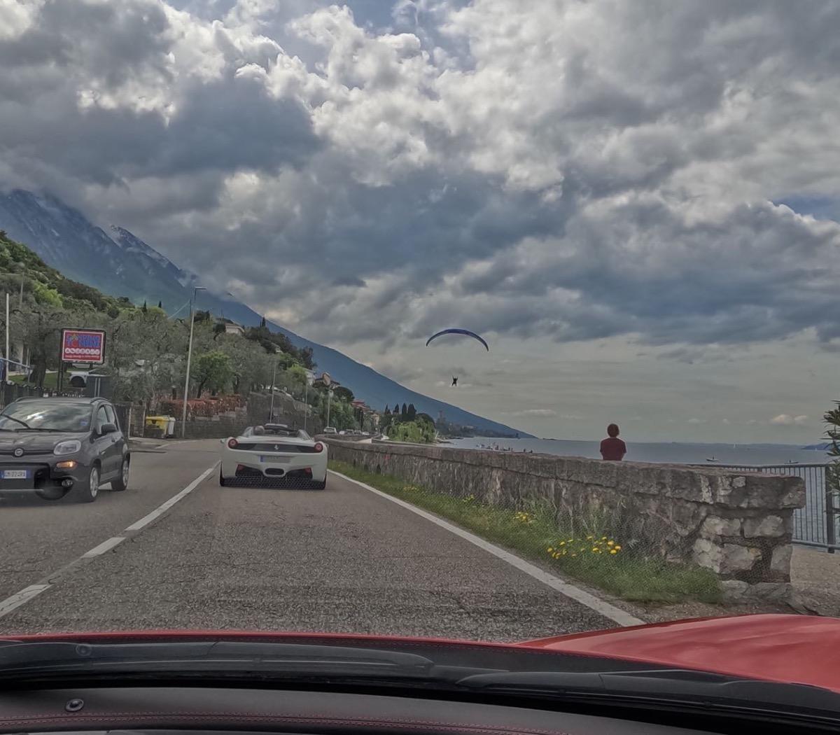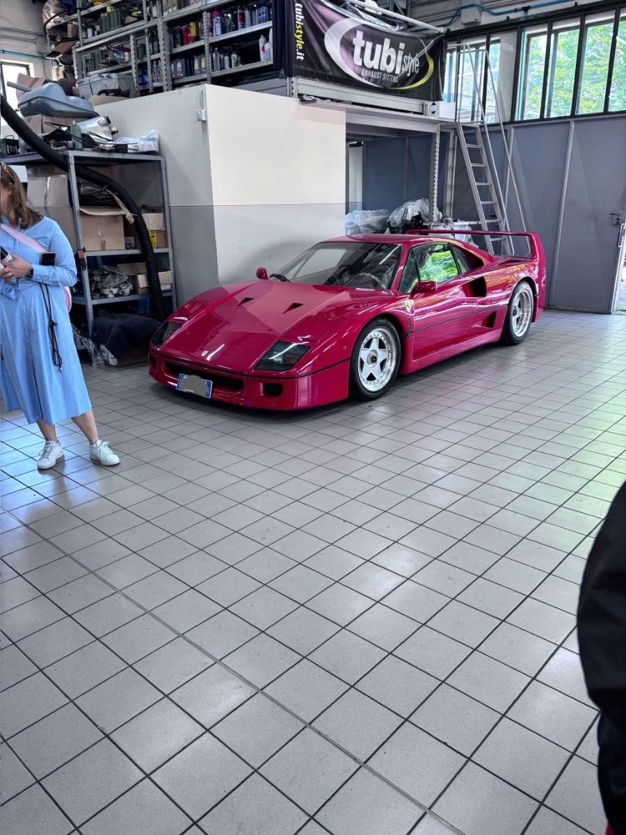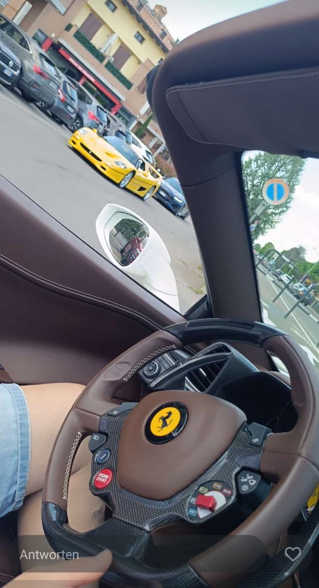 Als wir beide vor dem Werkstor standen, kam sofort der Ferrari-Sheriff. Man sieht ihn oberhalb meiner Kofferraumhaube. (Vorne, Mensch! Wohin schaut ihr denn? ;) )