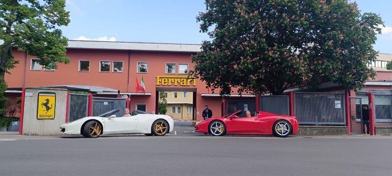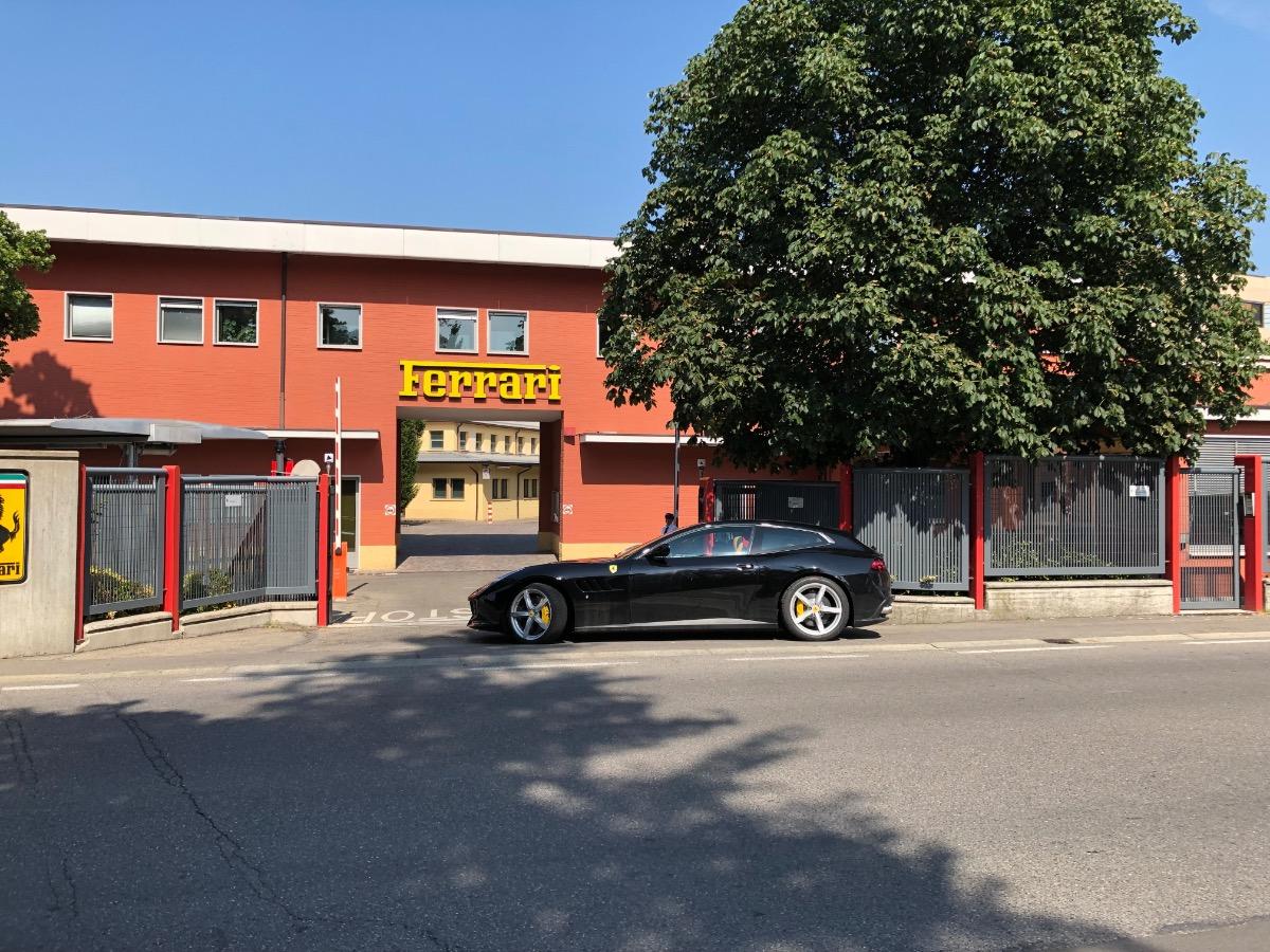 Als wir beide vor dem Werkstor standen, kam sofort der Ferrari-Sheriff. Man sieht ihn oberhalb meiner Kofferraumhaube. (Vorne, Mensch! Wohin schaut ihr denn? ;) )