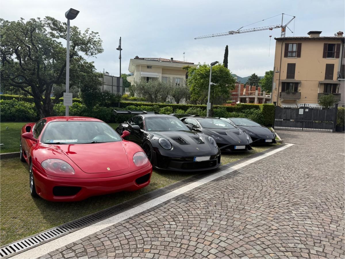 Hotelparkplatz mit ein paar „netten“ Fahrzeugen, sogar gleich zwei GT3 RS zugleich: