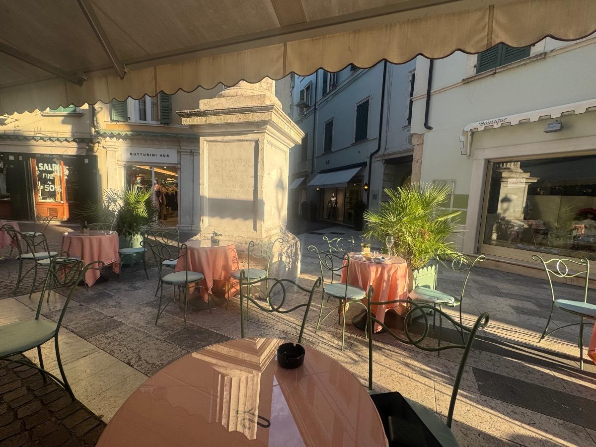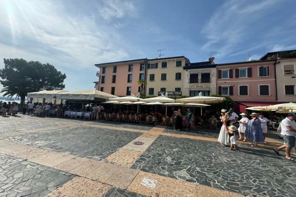 Ich hab mich heute Morgen auf einen ordentlichen Marsch nach Desenzano begeben. Dort war’s zwischen Vormittag und frühen Mittag überall, ob auf der Piazza oder im Restaurant, völlig entspannt.