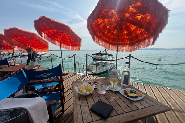 Im Bella in Portese, wo ich mittags gerne bin, weil man dort auch selbst alleine super mit dem Boot anlegen kann, saß ich neben nur 2 (!) anderen belegten Tischen. Anfang Juli saß ich ebendort mittags einmal sogar mutterseelenallein.