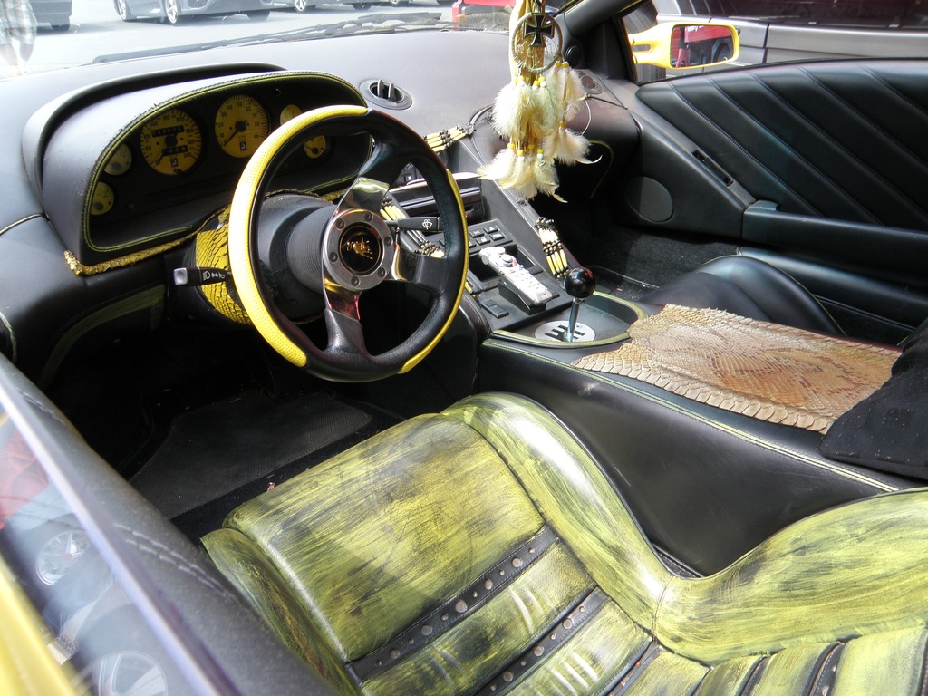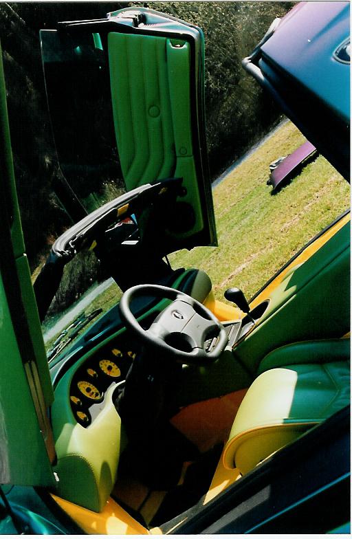 Grün/gelbes Interior und dazu noch diese lila Flip-Flop Lackierung! Da dürften der 90er Jahre Geschmack seinen Zenit gehabt haben.