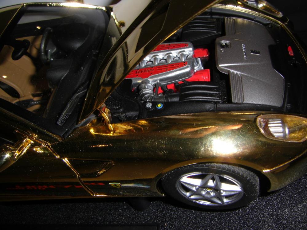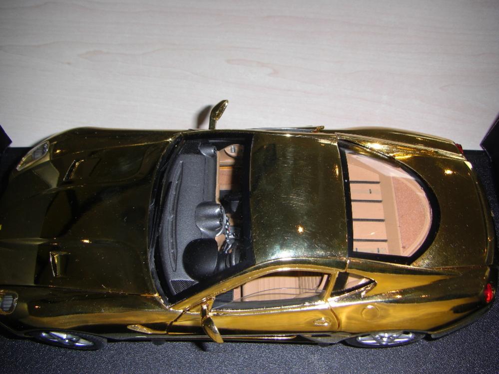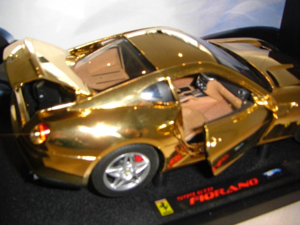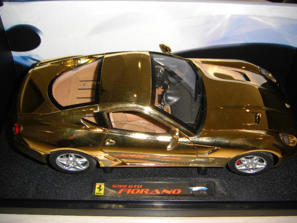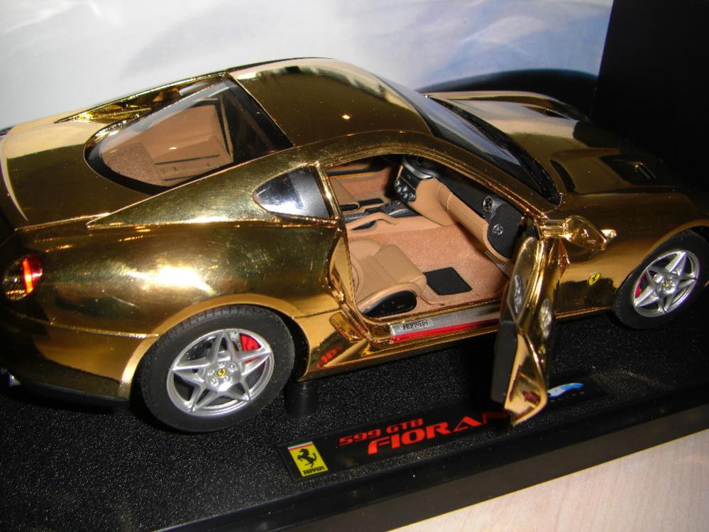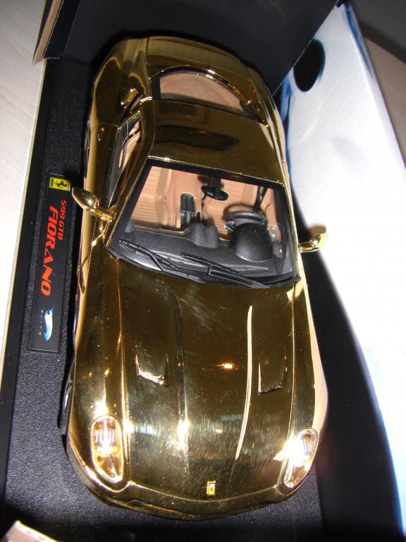 Hier einige Bilder von einem Ferrari 599 GTB Fiorano, Modell 1:18, welches wir für einen Kunden galvanisch vergoldet haben. Ist also nicht lackiert oder bemalt, sondern mit echtem Gold überzogen. Der Innenbereich ist vollständig im Originalzustand, die Türen, Motorhaube etc. können nach wie vor geöffnet werden. In "Originalgröße" wäre das ein Highlight für Dubai :wink: