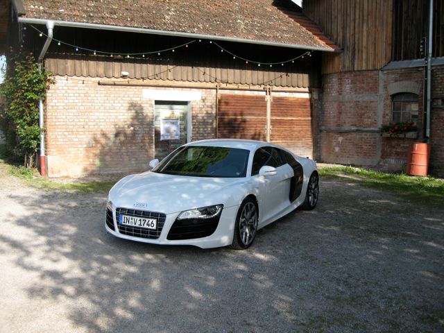 Mich begeisterte der Langstreckenkomfort: Der Innenraum für einen Mittelmotor-Sportwagen geradezu geräumig, sesselhaft bequeme Sitze - nicht die Sportsitze - und eine erstaunlich weiche Federung, wobei sich ja das Fahrwerk per Knopfdruck härter einstellen lässt. Ich meine "per Sportwagen" nur im Mercedes-Benz SL (R230) komfortabler unterwegs gewesen zu sein. Aber nicht leiser, denn der V10 arbeitet vergleichsweise unmerklich, die R-tronic schaltet inzwischen sanft und schnell. Und auch nicht reißerischer, ein R8 mit Tagfahrlicht im Rückspiegel ist eine Ansage, vor allem dunkel lackiert. Nichtsdestotrotz mit Manieren, ein Granturismo mit Mittelmotor, unaufgeregt, alltagstauglich, man kann nichts schlechtes an ihm finden.