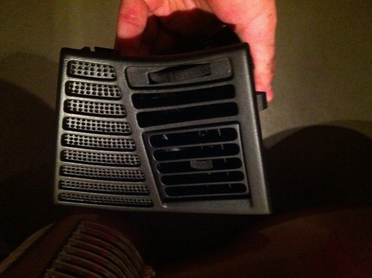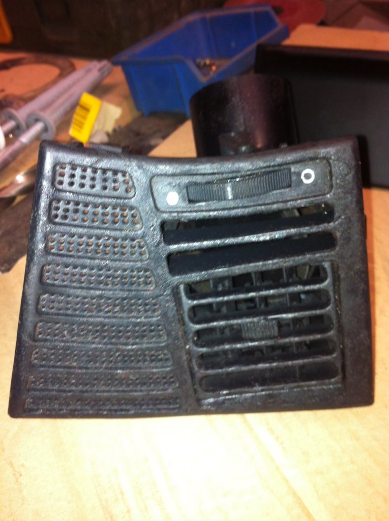 beim ausbau der linken und rechten sind mir leider gleich die inneren haltenasen für den fächer zerbröselt so das ich die mit sekundenkleber fixieren musste. anscheinend bin ich aber nicht der einzige mit dem problem ;). jeweils ne halterung war auch schon gebrochen. aber in betracht gezogen das die oberfläche jetzt um universen besser ist wie vorher akzeptiere ich das jetzt, wobei ich trotzdem schauen werde irgendwo noch welche aufzutreiben. das mit dem fächer-festkleben hat was von murks was ich auf lange sicht nicht gern sehe ;)