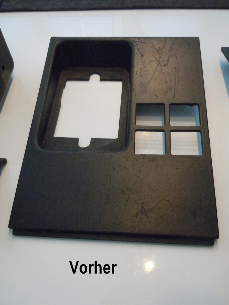 Ersten drei ist der klebrige eklige Altzustand, Bild vier frisch lackiert, Rest fertig und mit etwas Armor All gepflegt