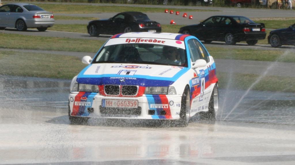 Das Wetter war auch super - zu super für meinen Nacken. Aber das gehört ja echt irgendwie dazu. Schade, dass es nicht so kühl wie am Morgen geblieben ist. Und nochmal Hut ab an die Morgan-Piloten, die es bei den Trackfahrten überhaupt nicht ruhig angegangen haben und an diversen, aktuelleren Fahrzeugen drangeblieben sind und den Nassparkour auch ohne Verdeck gefahren sind :-O:-))!