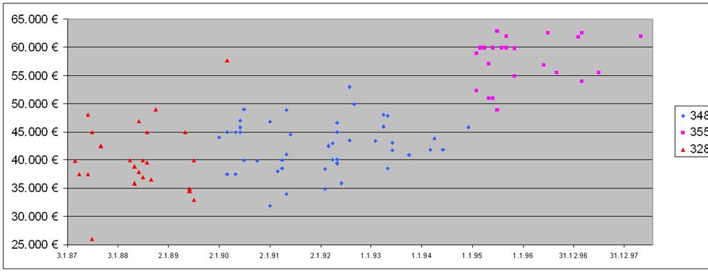 Vor meinem ersten Ferrarikauf war ich ein so trauriger Gestalt, daß ich fast ein ganzes Jahrlang die Preise von 328 / 348 / 355 verfolgte - siehe Bild.