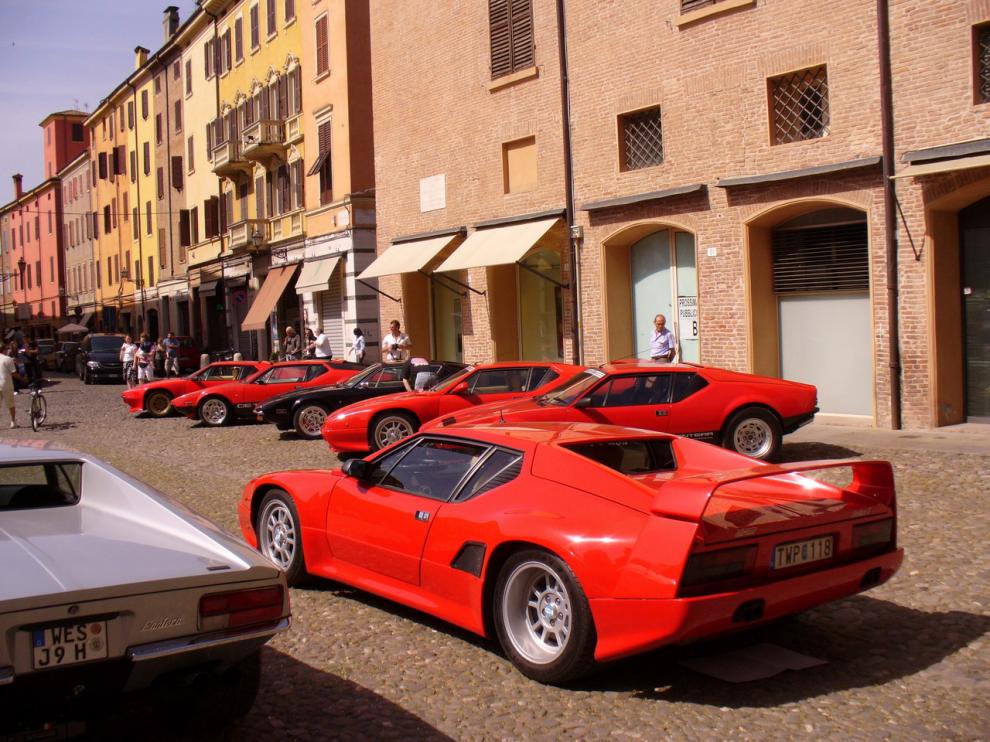 Letztes Wochenende haben sich in Modena ca. 60 De Tomasos und mehr als 150 Leute aus ganz Europa getroffen. Sogar aus Spanien, Norwegen, Schweden , Finnland und aus Polen sind sie angereist. Bei den Fahrzeugen war so ziemlich alles vertreten, was De Tomaso jemals gebaut hat. Ein roter Vallelunga, 3 Mangustes in gelb, blau und rot, etliche Longchamps, Deauville, und Panteras in allen Ausführungen. Dazu 5 Pantera Si, davon ein Targa, sowie ein Guara Coupe und ein Spider.