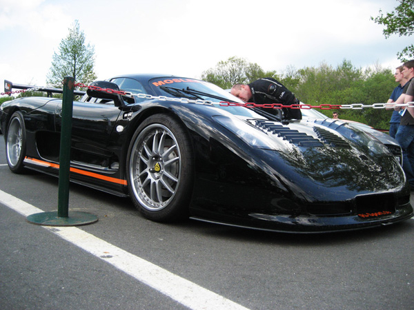 Es handelt sich um einen von weltweit 3 gebauten Mosler MT900 SC (Supercharged) in der Farbe schwarz. Eine wahre Rarität unter den Sportwagen.