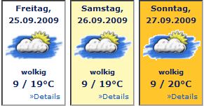 Das Wetter wird wohl recht gut: Wir können mit ca. 20°C rechnen, Regenrisiko lediglich 20%!