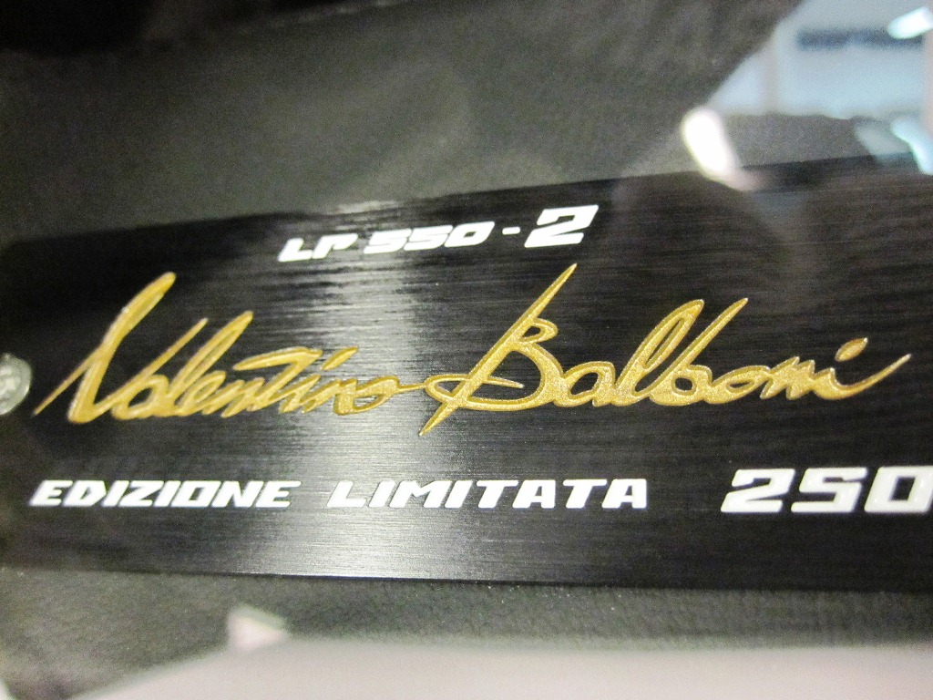 Gegenüber der sonst bei Lamborghini bekannten Praxis, die limitierten Autos wirklich auch durchzunummerieren, sind der Balboni und der Reventón Roadster jeweils nur als "1 of xxx" gekennzeichnet, bzw genaugenommen steht beim Balboni sogar nur, dass es eine limitierte Serie von 250 Autos ist. Eigentlich schade, aber beim neuen Super Trofeo Stradale hat man das ja wieder geradegerückt.