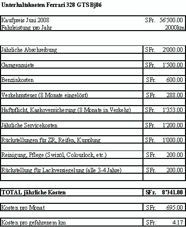 Auf Deine Anregung hin habe ich mich durchgerungen, eine ähnliche Kostenaufstellung für meinen Ferrari zu machen .