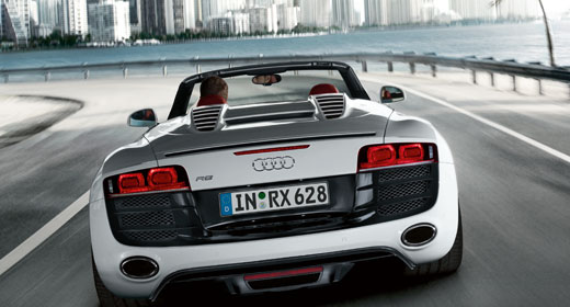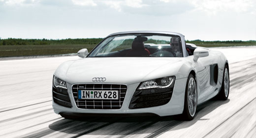 Der Audi R8 Spyder 5.2 FSI quattro, der in Zusammenarbeit mit der quattro GmbH entwickelt wurde, fasziniert mit seiner kompromisslosen Performance. Der V10 mit dem Aluminium-Kurbelgehäuse, der in weiten Bereichen von Hand montiert wird, steht in der großen Motorsporttradition von Audi. Bei 6.500 Touren stemmt der Sauger 530 Nm Drehmoment; bei 8.000 1/min liegt die Höchstleistung von 386 kW (525 PS) an, und erst bei 8.700 1/min ist die Drehzahlgrenze erreicht. Die spezifische Leistung beträgt 100,9 PS pro Liter Hubraum, jedes PS muss nur 3,3 Kilogramm Gewicht bewegen.