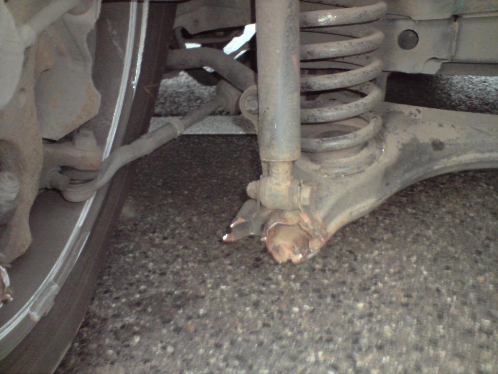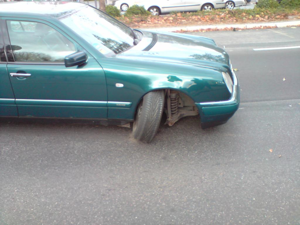 Vor etwa einer Woche bin ich die E-Klasse meines verstorbenen Großvaters gefahren, und bei etwa 50 km/h innerorts musste ich etwas stärker abbremsen (nicht voll), da zwei Passanten eine Kreuzung trotz Rotlicht überquerten. Durch die Bremsung ist das rechte vordere Rad sozusagen abgerissen, oder besser der Querlenker, der das Rad hält. Dieses stellte sich dann im Radkasten quer und ich kam etwas unsanft zum stehen. Beim aussteigen stellte ich dann fest, das der Querlenker durchgerostet war, und zwar so stark, dass man das Metal mit dem Finger zerbröseln konnte.