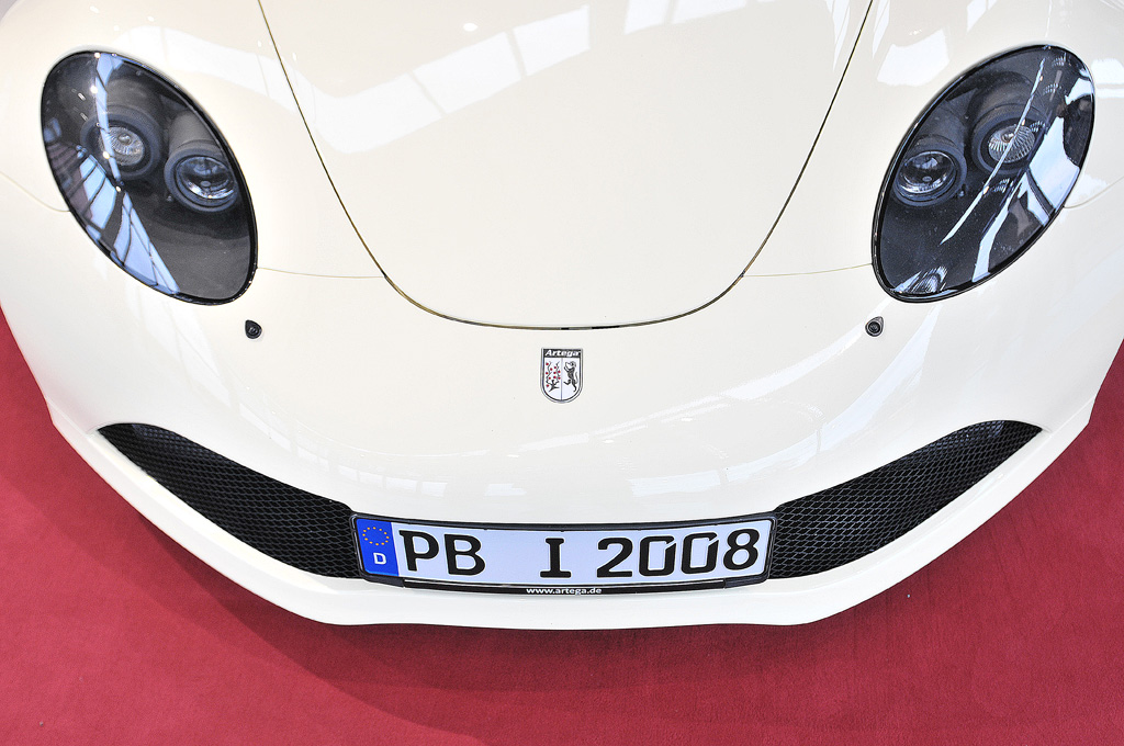 Was Entwicklungsträger bedeutet sieht man hier ganz gut. Im Vergleich zu dem Exemplar was Alpinchen gefahren ist, und was auch Artega gut bekannt ist, hat dieses Modell bereits verbesserte Dichtungen an den Scheinwerfer. Die Wasserflecker auf der Innenseite des Glases sehen zwar nicht schön aus, sind aber nur ein Schönheitsfehler aus der Erprobung. Schließlich muss auch ein Entwicklungsträger hart getestet werden. :wink: