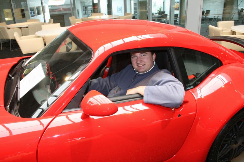 Mit dem schwarzen MF4 Roadster wurde jeder von uns eine Runde lang kutschiert. Tolles Auto, auch wenn er mir aus dem aktuellen Wiesmann-Programm persönlich am wenigsten gefällt.