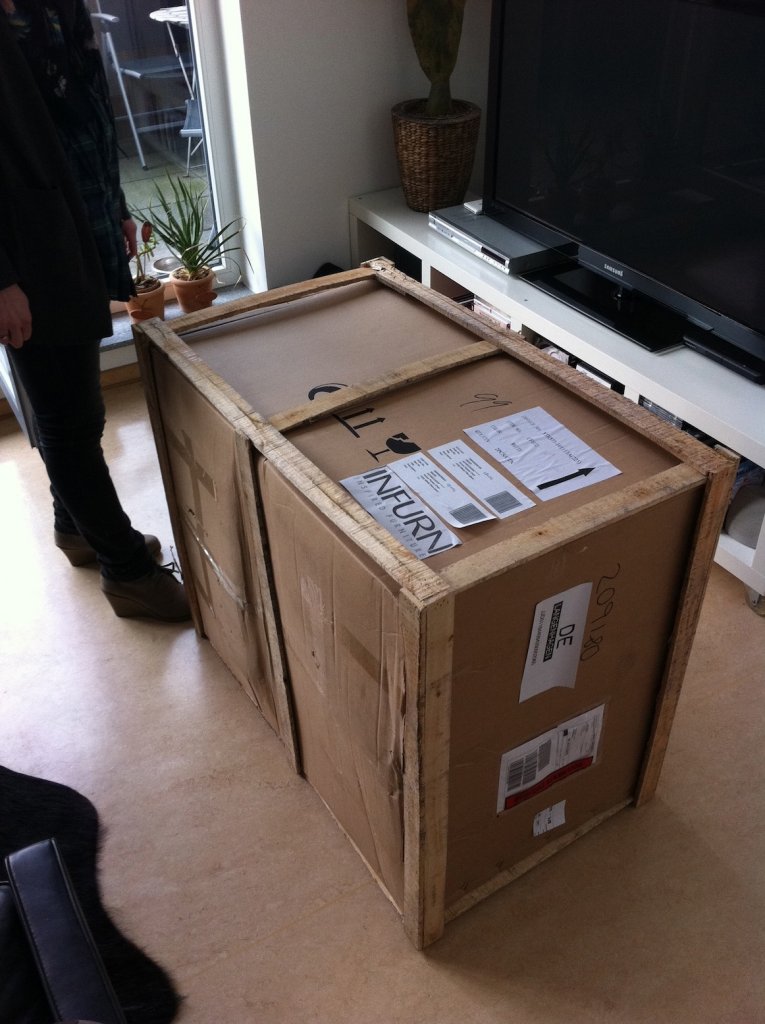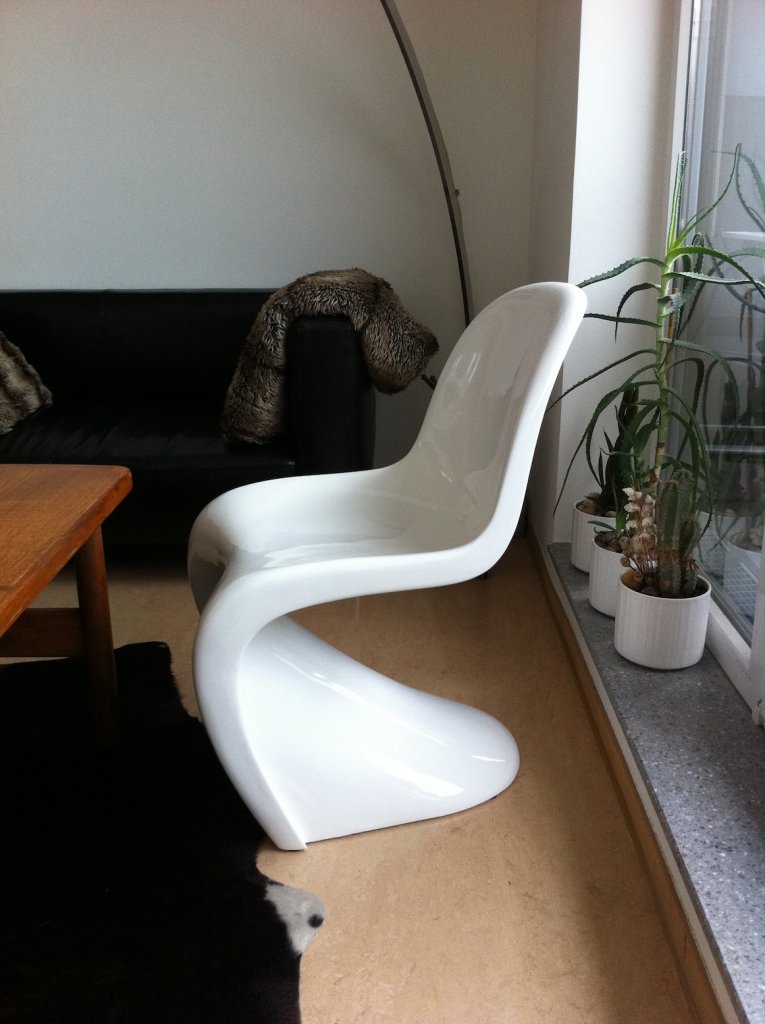 Für unseren Ess-Platz sind nun endlich unsere "Verner Panton Fiberglass" Replikas aus London gekommen. Natürlich waren wir etwas skeptisch bzgl. der Qualität, aber da wir schon so gute Erfahrungen mit dem 3-Sitzer Sofa gemacht haben, trauten wir uns mal wieder Vorkasse zu leisten und Monate auf die Ware zu warten.
