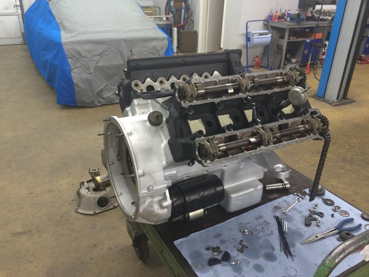 die Restaurierung geht gut voran. Der Motor ist bereits fertig zusammen und wird in den nächsten Tagen inkl. Getriebe eingebaut. Die Hochzeit steht sozusagen bevor.