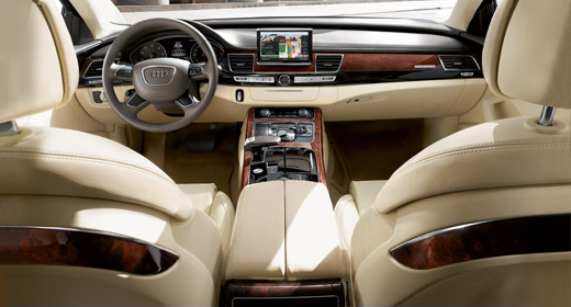 Die neue Luxuslimousine, die Anfang 2010 zu den Händlern rollt, ist ein technisches Kunstwerk. Ihre elegant und kraftvoll gezeichnete Karosserie entsteht in der Audi Space Frame-Bauweise (ASF) aus Aluminium, sie wiegt etwa 40 Prozent weniger als ein vergleichbarer Aufbau aus Stahl. Das Interieur fasziniert durch eine neue, lichte Linienführung und eine kompromisslos hochwertige Verarbeitung voll Liebe zum kleinsten Detail. Der Komfort an Bord ist First Class – von der neuen, emotionalen Ambientebeleuchtung bis zu den luxuriösen, elektrischen verstellbaren Sitzen im Fond.