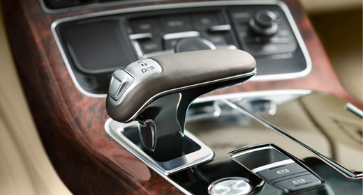 An der Steigerung der Effizienz hat auch das serienmäßige neue Getriebe großen Anteil – die hochkomfortabel arbeitende Achtstufen-tiptronic staffelt ihre acht Gänge eng und erzielt zugleich eine große Gesamtspreizung. Ihre Steuerung erfolgt rein elektronisch über einen eleganten Wählhebel und über Wippen am Lenkrad. Der permanente Allradantrieb quattro arbeitet sportlichheckbetont. Auf Wunsch verteilt das Sportdifferenzial die Kräfte dynamisch