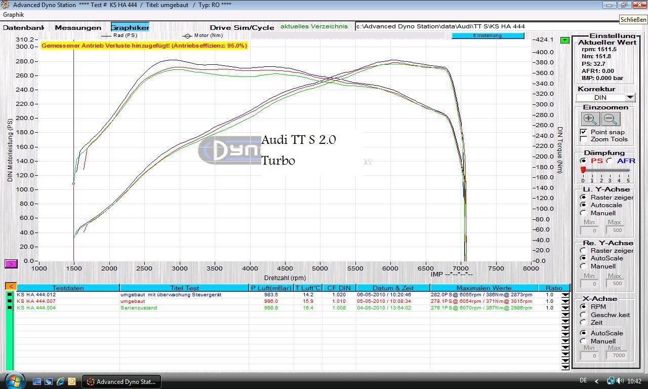das ist die TT S Anlage kostet 2062.50 zuzügl. MwSt. macht 2454,37 Euro, die Anlage kann an die Serien Steuerung angeschlossen werden und dami öffnen die Abgasklappen automatisch bei dem von Audi definierten öffnungspunkt, wir haben einen spürbaren Drehmomentanstieg wobei die Maximale Leistung wird erziehlt wenn man unsere Staudruck überwachung Steuerung einsetzt, wir haben einen Teilegutachten wo der Tüv Nord eine Leistungssteigerung bestätigt.