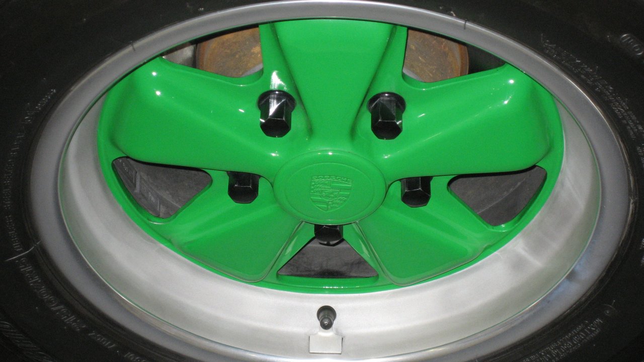 Ein weiterer interessanter Punkt ist die Nabenabdeckung der Felgen. Einige "Experten" behaupten, dass die nur in silber lieferbar waren, andere wollen "genau wissen", dass die in den selben Farben gehalten waren, wie die Felgen.