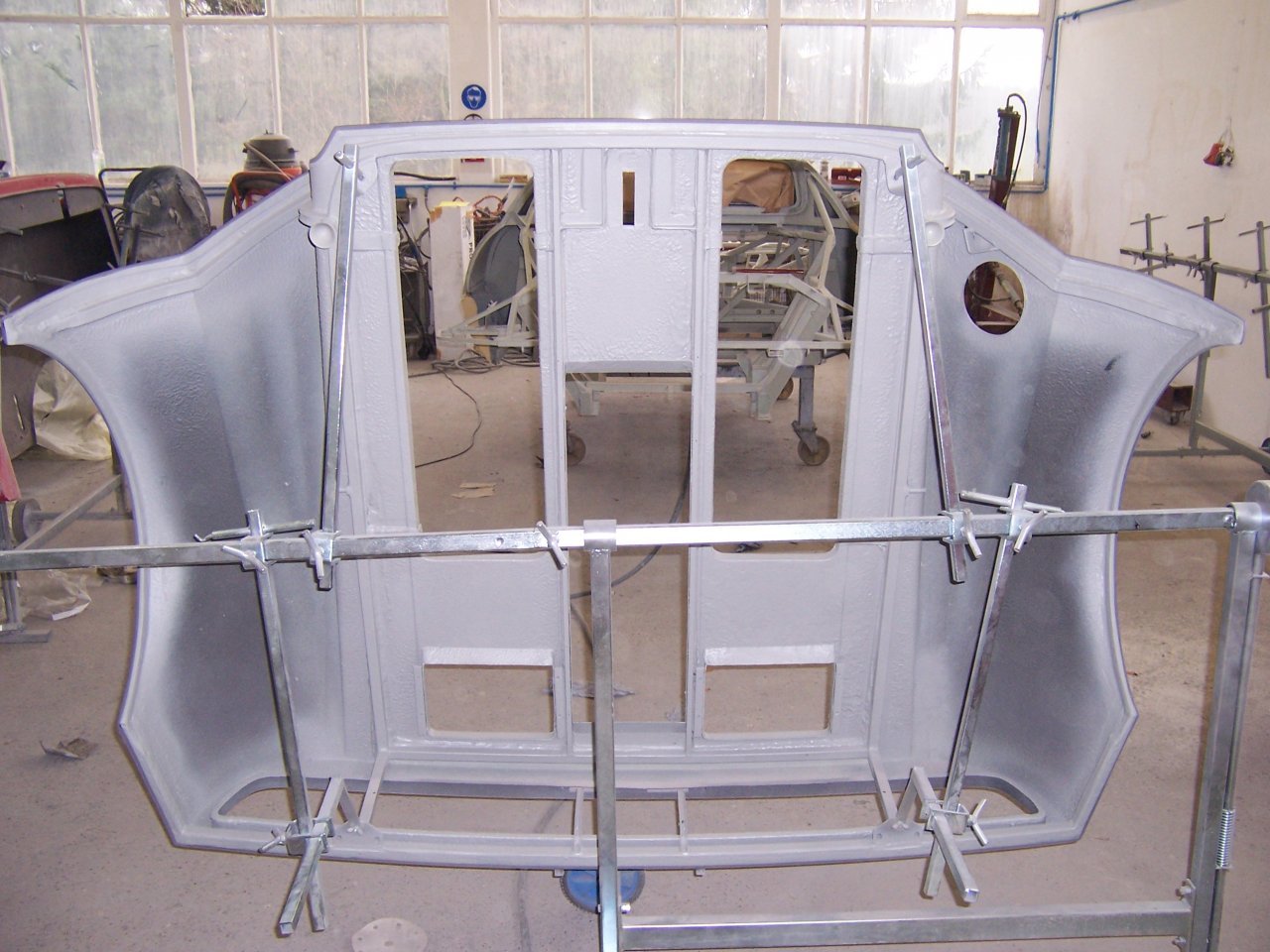 Das Problem bei allen galvanischen bzw. fluessigen Methoden sind die Rohre. Erstmal wird mit Chemie entrostet, nur muss das alles vollkommen raus, bevor man den naechsten Schritt mit Beschichten macht. Da die Ein- und Anbauteile alle genietet sind, gibt es ueberall Loecher in den Rohren. Um da alles wieder heraus zu bekommen muesste man einen Schweizer Kaese von machen, was der Stabilitaet nicht gerade gut tut. Bleibt auch nur der geringste Teil drin, war die anschliesende Beschichtung (Zink, Chromat, KTL etc) umsonst, denn das wird sich alles wieder an- bzw. aufloesen. Deswegen hab ich auch Trockeneis genommen, da schon Sand ganz schwer raus zu bekommen ist. Ich wollte auch nicht beim Tuer zu machen jedesmal Sand wegfegen.