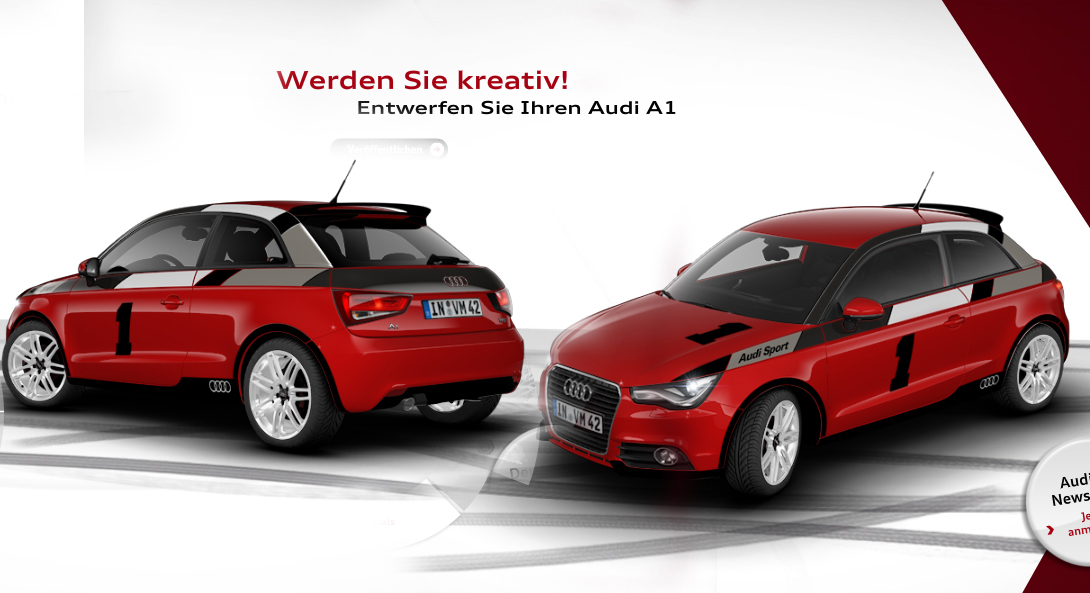 Endlich ist es soweit. Das lange Warten hat ein Ende. Der Audi A1 ist da. Als echter vollwertiger Audi im Kleinwagen-Segment überzeugt er durch kompromisslose Qualität und sorgfältigste Verarbeitung in jedem Detail. Dank seines agilen Fahrwerks und seiner Motoren ist er das sportlichste Fahrzeug seiner Klasse. Zum Start stehen zwei Motorisierungen mit Direkteinspritzung und Turboaufladung zur Auswahl: