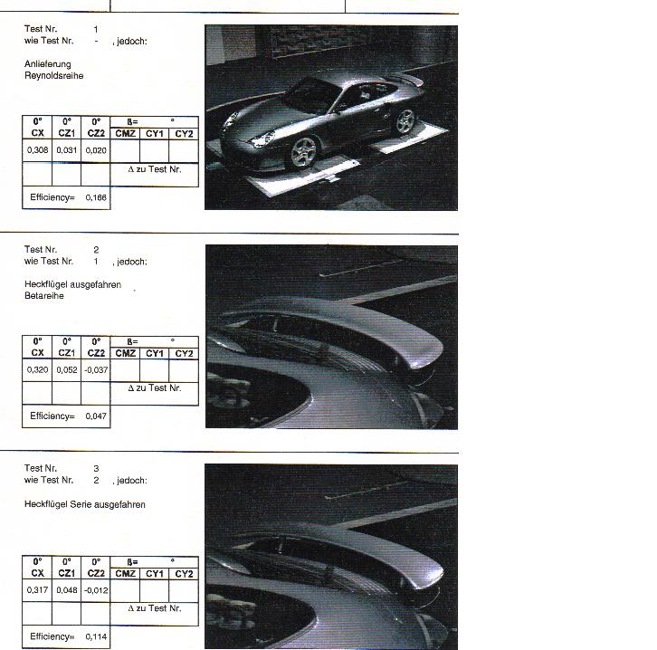 Der Flügel wurde auf einem 996 Turbo im BMW Windkanal bei Dingolfing gestestet. Ich war sogar mit dabei. Die abtriebswerte sind aufgrund der größeren Fläche und der steileren Abrisskante deutlich besser. Je schneller desto mehr Druck gibts.