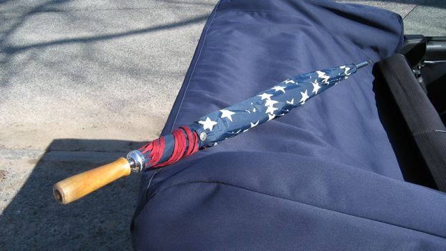 Trotzdem paßt dieser Schirm perfekt zu dem Auto, in dem er aufbewahrt wird, nicht nur farblich, sondern auch aufgrund seiner Historie: