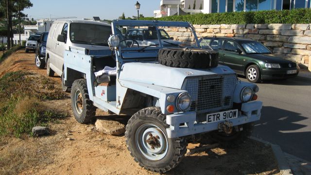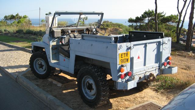 Morris Mini Moke und Land Rover Series I, beide farblich dem Himmel über dem Atlantik angepaßt.