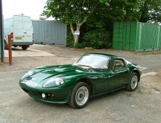Ein Marcos mantula Coupé von 1989 in Jaguar British Racing Green!