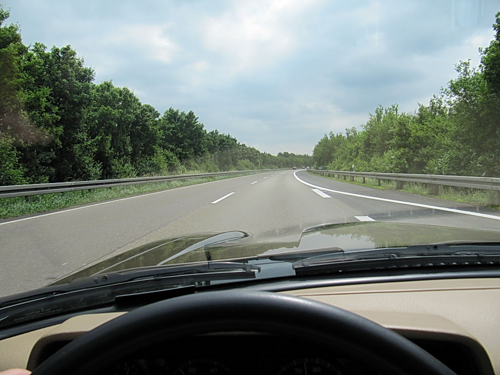 Dann, den Tank "filled to its upper rim", ging es los, zunächst mit gemählicher Geschwindigkeit, um den Wagen an die "german bahn" zu gewöhnen - schließlich war er noch nie nach seinem US-Import an die deutschen Verhältnisse gewohnt worden.