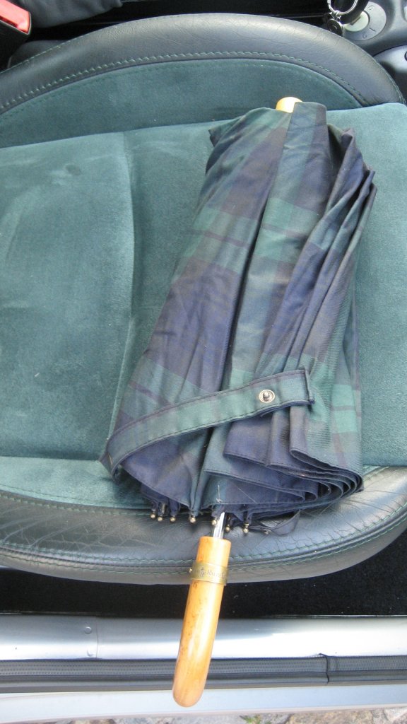 Aber, um im gehobenen Segment zu bleiben, möchte ich dann doch auf die 8. Folge von "Regenschirm und Auto - Der blaue Schirm", Post #1694 auf Seite 170 dieses geschätzten Threads verweisen, ich habe nämlich vor einiger Zeit in einem Daimler Double Six mitfahren dürfen, dessen Custodian einen natürlich passenden Schirm im Wagen mitführte.