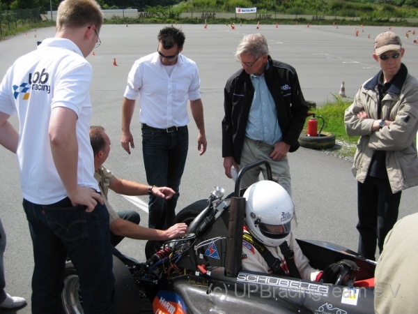 Hier mal ein Foto, mit der Zusammenarbeit des Formula-Student Team Paderborns. Kurz danach ist er unseren Wagen auch selber gefahren, und zwar sehr flott!