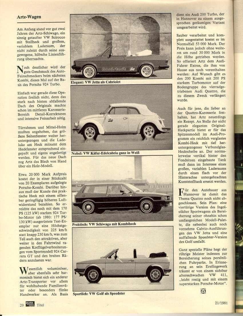 Das rote Jetta Cabrio-Unikat hat übrigens meines Wissens überlebt, es stand vor ein paar Jahren in der AutoBild Klassik zum Verkauf, leider in erbarmungswürdigem Zustand. Leider weiß ich nicht, was danach aus dem Fahrzeug geworden ist, so bleibt zu hoffen, daß sich ein engagierter Käufer gefunden hat, der dem Einzelstück zu neuem Leben verhilft.