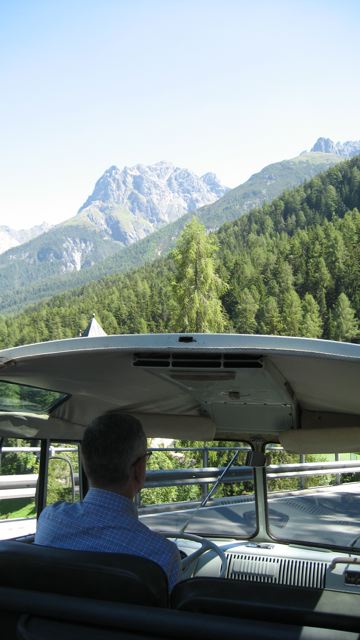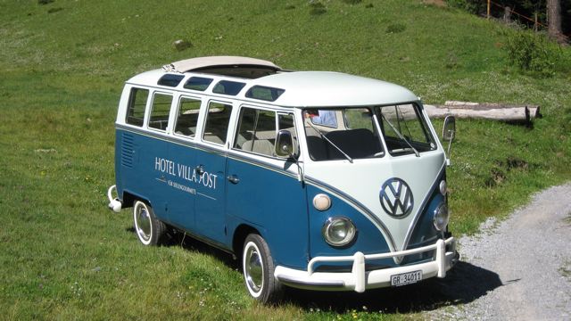 Um den VW-Thread nicht bis zur Fertigstellung meines Käfers völlig in Vergessenheit geraten zu lassen, hier ein paar Photos von einem wunderschönen Samba-Bus, der zu einem wunderschönen Hotel im Engadin gehört.