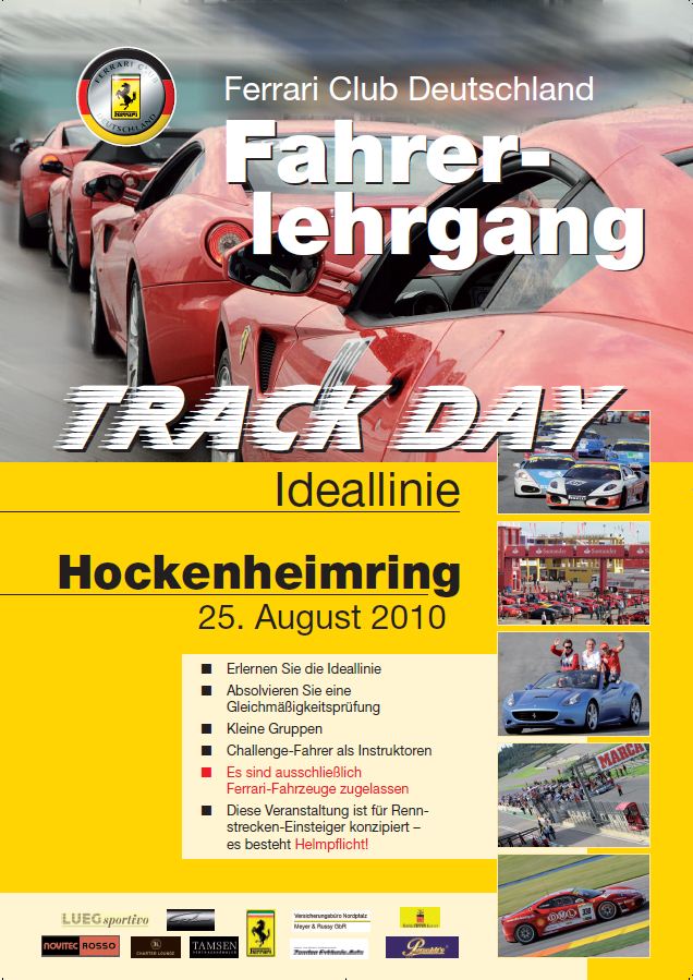 Könnte es daran liegen, dass es in erster Linie um ein vorsichtiges herantasten von Anfängern auf der Rennstrecke geht? Oder anders gesagt, dass alle Fahrer, die Rennstreckenerfahung mitbringen, eher gelangweilt wären? Oder geht es einfach nur darum, die exorbitante Trackmiete die einem die Hockenheimring GmbH mittlerweile zumutet, gewinnbringend umzulagern? Die Teilnehmergebühr ist ja sehr "sportlich" gewählt.