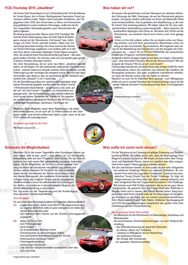 Challenge-Fahrer als Instruktoren, 430 Challenge als Renntaxi, kleine Gruppen, nur Ferrari-Fahrzeuge...