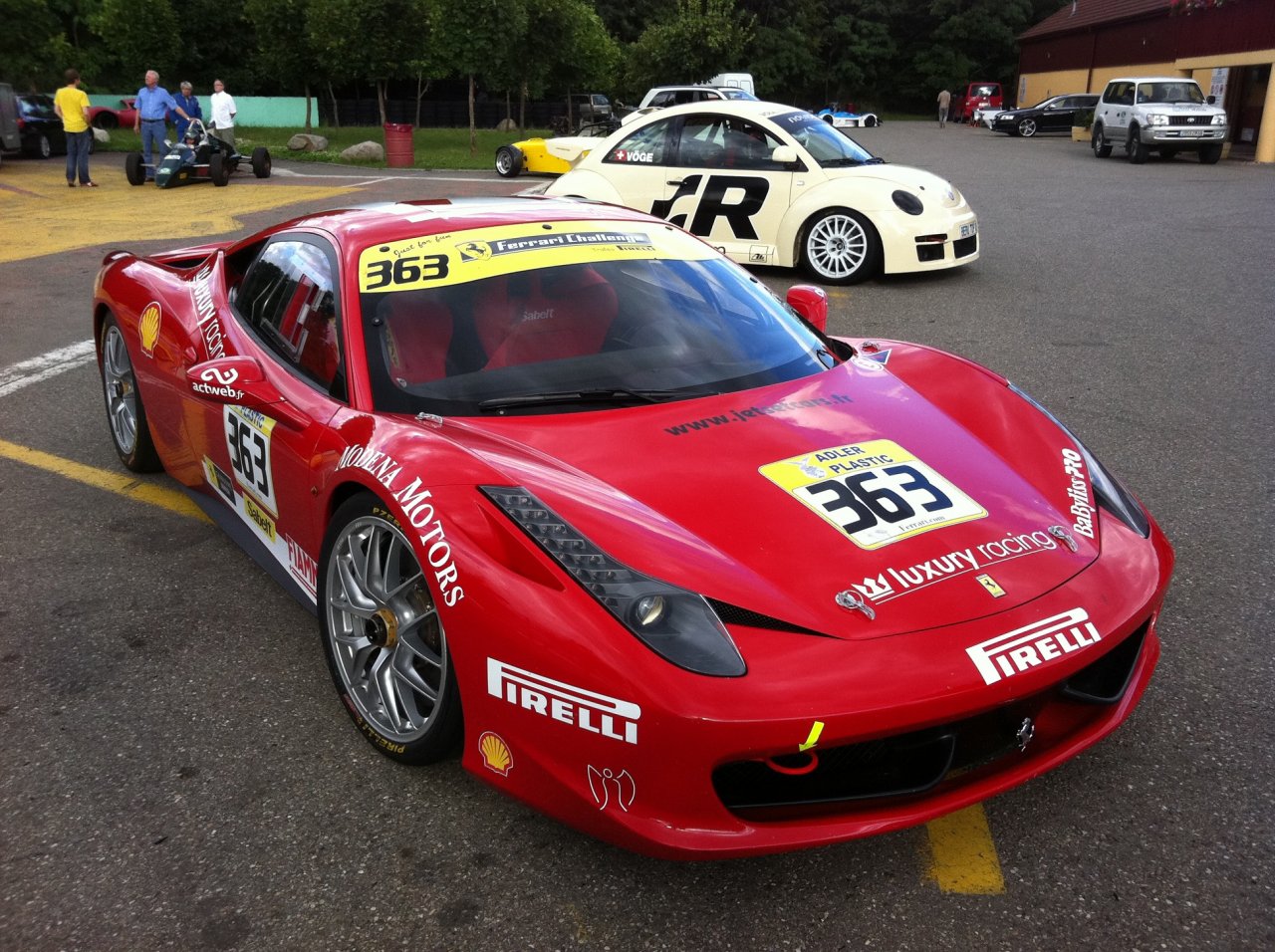 Ein Aktionär der Rennstrecke L'Anneau du Rhin kommt abends gelegentlich mit einem brandneuen 458 Challenge fahren. Dieser kling aber recht verhalten, eventuell hat der eine etwas "dezentere" Auspuffanlage wegen den strengen Lärmvorschriften.