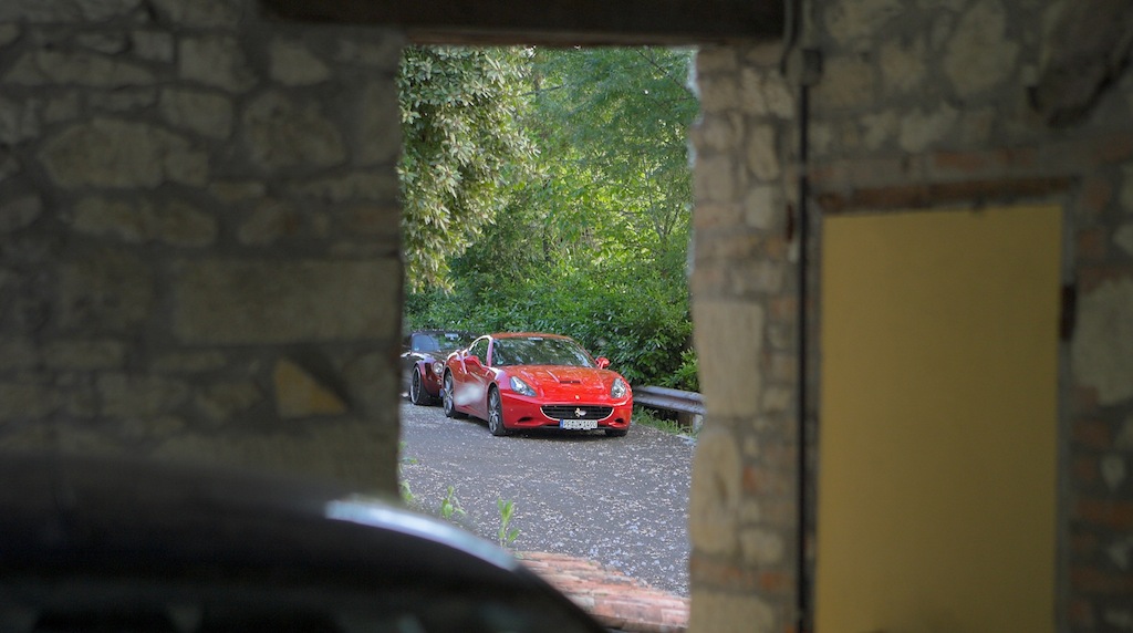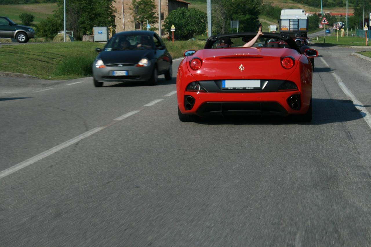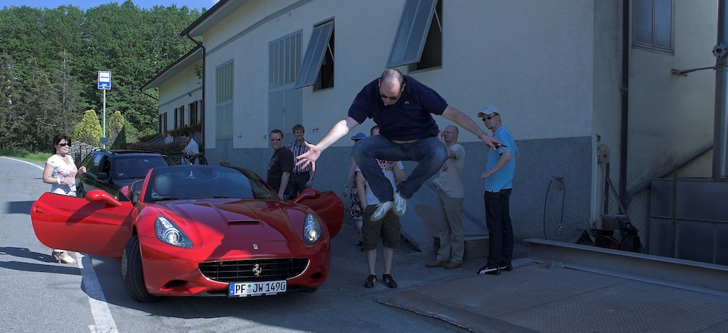 Am Parkplatz empfing uns eine hübsche, junge Italienerin mit den Worten „You want to drive a Ferrari?? 10 Minutes for only 60 Euros!!“ worauf die Besatzung des Californias nur wortlos (mit einem BREITEN Grinsen) den California Schlüssel aus der Hosentasche zauberte und der guten Frau sämtlichen Wind aus den Segeln nahm
