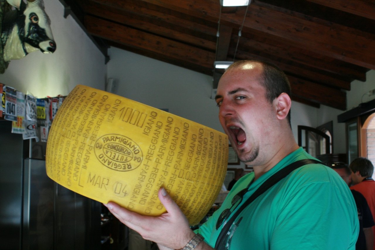 Nachdem wir uns wieder an den historischen Autos satt gesehen hatten ging es daran die Mägen wieder ein Stück zu füllen... Verkostung des Parmesan war angesagt!!
