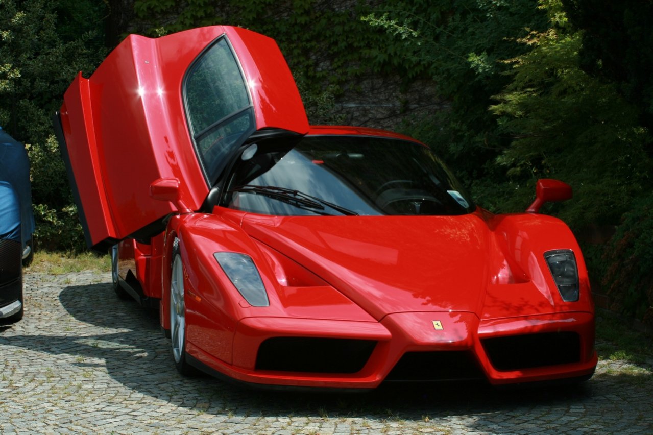 Im Hintergrund steht ein Enzo aus Sichtcarbon.