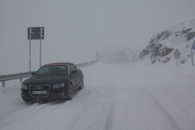 der Rückweg ging über den Jaufenpass, der aufgrund des plötzlichen Wintereinbruches und extrabreiten Sommerreifen mehr als grenzwertig zum fahren war ...