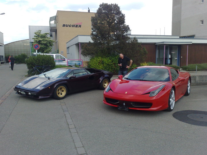 hier noch ein Bild, der Countach ist ja richtig niedrig und klein gegenüber dem roten Walross. :D