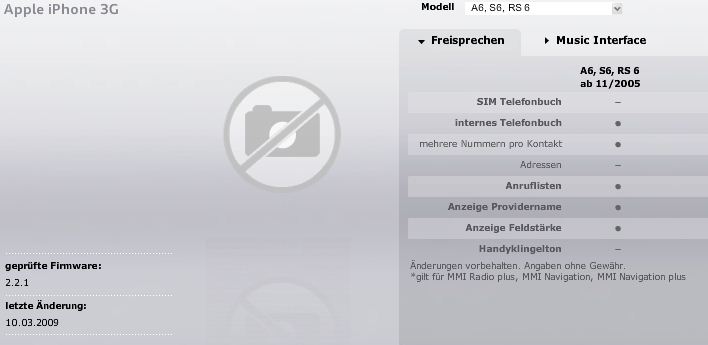 Also bei unserem A6 2.7 tdi (aktuelles Modell, vor-facelift, ich meine Baujahr 2008) funzt das iPhone über das Music-Interface und wird sogar (entgegen der Aussage auf dem Display) geladen...
