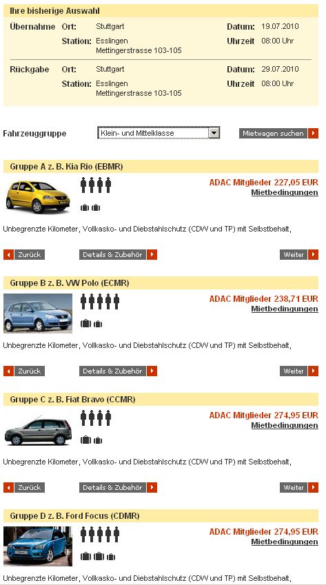Als ADAC Mitglied gibt es interessante Angebote über Hertz, z. B. VW Polo:
