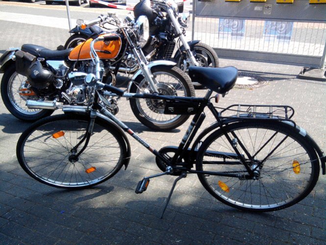 Unten noch zwei Bilder mit der SR und meinem alten "Bergsieger" Fahrrad, natürlich aus Paderborn. Das war noch bester Fahrradbau aus OWL! :wink: