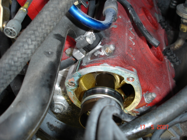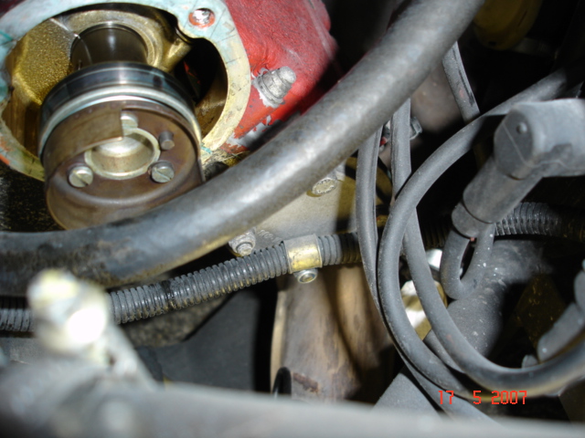 oben an der Nockenwelle dort befindet sich auf de Stirnseite vorne als nicht hinten an der Spritzwand sondern direkt vorne ein Kreisrundes Gusteil aus dem